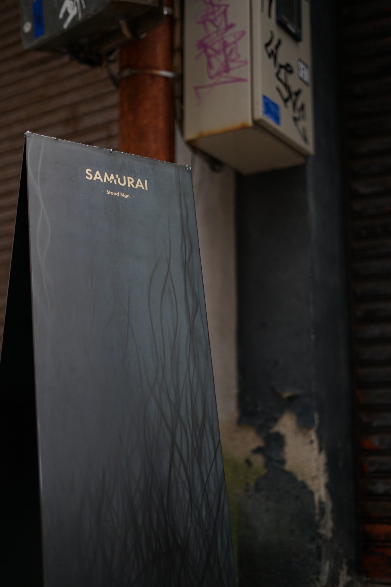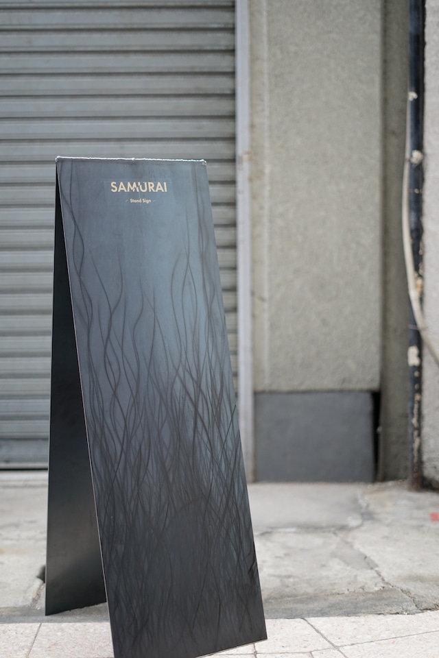 重厚な存在感を放つ、鉄製のキューブ型サイン。